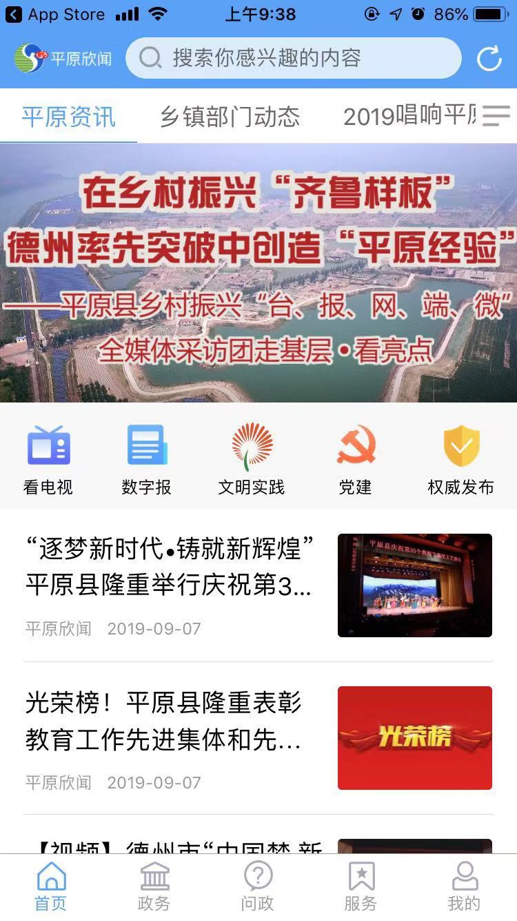 平原欣闻客户端包含平原资讯、权威发布、文明实践、看电视、数字报、党建等板块及相应推荐位展现形式。今日热点、政务服务等板块一站聚合,高频次内容的更新,并配以更精、更轻、更快的内容及呈现方式,动动手指便可尽知天下事。