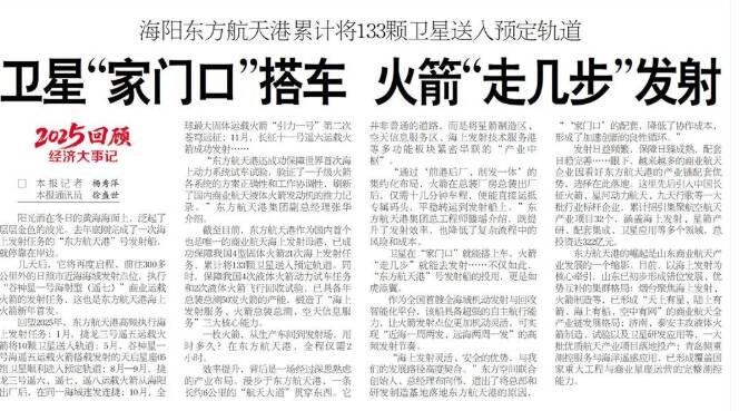 海阳东方航天港累计将133颗卫星送入预定轨道 卫星...